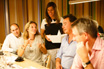 El menú de la cena estuvo compuesto por "Croquetas del Echaurren", "Magras con tomate" de Koldo Rodero (un canto y una deconstrucción de este peculiar majar navarro). Después hubo "Menestra" de Francis, para pasar a otro plato de Koldo, la "Merluza en gel de nécora", un recuerdo a la cocina de Jesús, su padre. Se acabó con la "Tosta de Cameros" de la casa y la cena estuvo maridada por vinos de las Bodegas Fernández de Piérola (Cyatho 100% verdejo) y el Crianza 2008, ambos fueron presentados por Carlos Bujanda. |