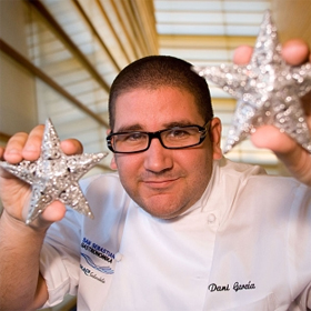 De niño quería ser futbolista pero se ha convertido en una de las principales referencias de la cocina española. Y es que con apenas 35 años, Dani García, cocinero de Marbella, presenta un currículum sencillamente memorable ratificado con sus dos estrellas Michelin. Se formó en restaurantes como Martín Berasategui (Lasarte, Guipúzcoa), entusiasmó en Tragabuches (Ronda, Málaga) hasta ratificar todo su estilo en Calima, donde se apoya en un equipo de cuarenta profesionales para atender una sala con capacidad para cincuenta personas. Su fórmula, sin carta, tal y como relata la periodista Marta Fernández Guadaño, «se basa en un menú degustación cerrado que puede variar en función de los productos del día y los gustos o alergias del cliente. Se pueden probar platos como Mi primer yogur (servido en un recipiente al estilo ‘Danone’), las Croquetas rotas de calamar de pota –una excusa para jugar con el cliente–, el Nido de golondrinas de jabugo o el Cocido rondeño y ‘dumpling’ de toro, guiños a fórmulas orientales en clave localista. El chef firma así una cocina andaluza reformulada en clave de vanguardia basada en el perfeccionismo técnico y en un servicio de sala propio de su doble estrella Michelin».